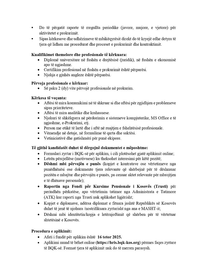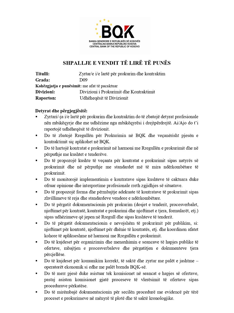 Zyrtar/e i/e lartë për prokurim dhe kontraktim