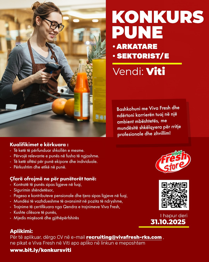 Linku per aplikim: https://vivafresh-rks.com/aplikimet/apliko-per-pune-ne-viti/