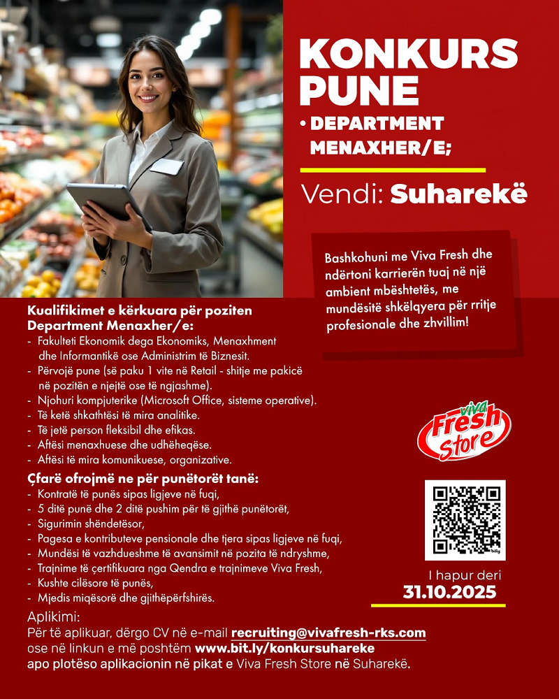 Linku per aplikim: https://vivafresh-rks.com/aplikimet/apliko-per-pune-ne-suhareke/
