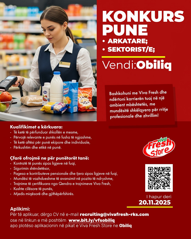 Linku per aplikim: https://vivafresh-rks.com/aplikimet/apliko-per-pune-ne-obiliq/