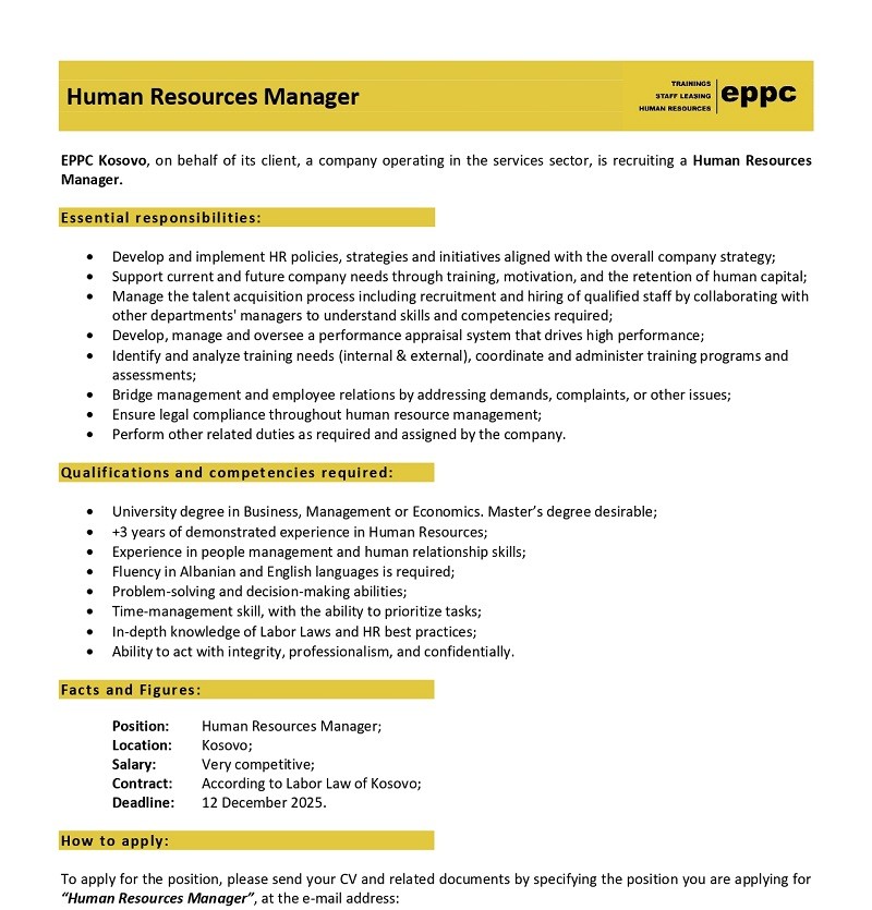 You will be contacted by EPPC Kosovo only if your CV & support documents will be qualified by our evaluation team.