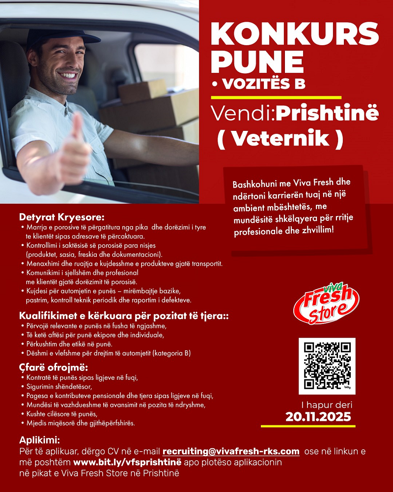 Linku per aplikim: https://vivafresh-rks.com/aplikimet/apliko-per-pune-ne-suhareke/