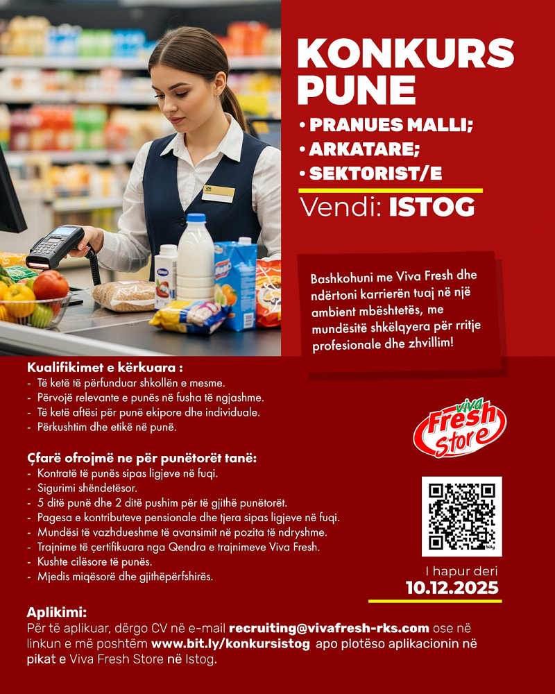 Linku per aplikim: https://vivafresh-rks.com/aplikimet/apliko-per-pune-ne-istog/