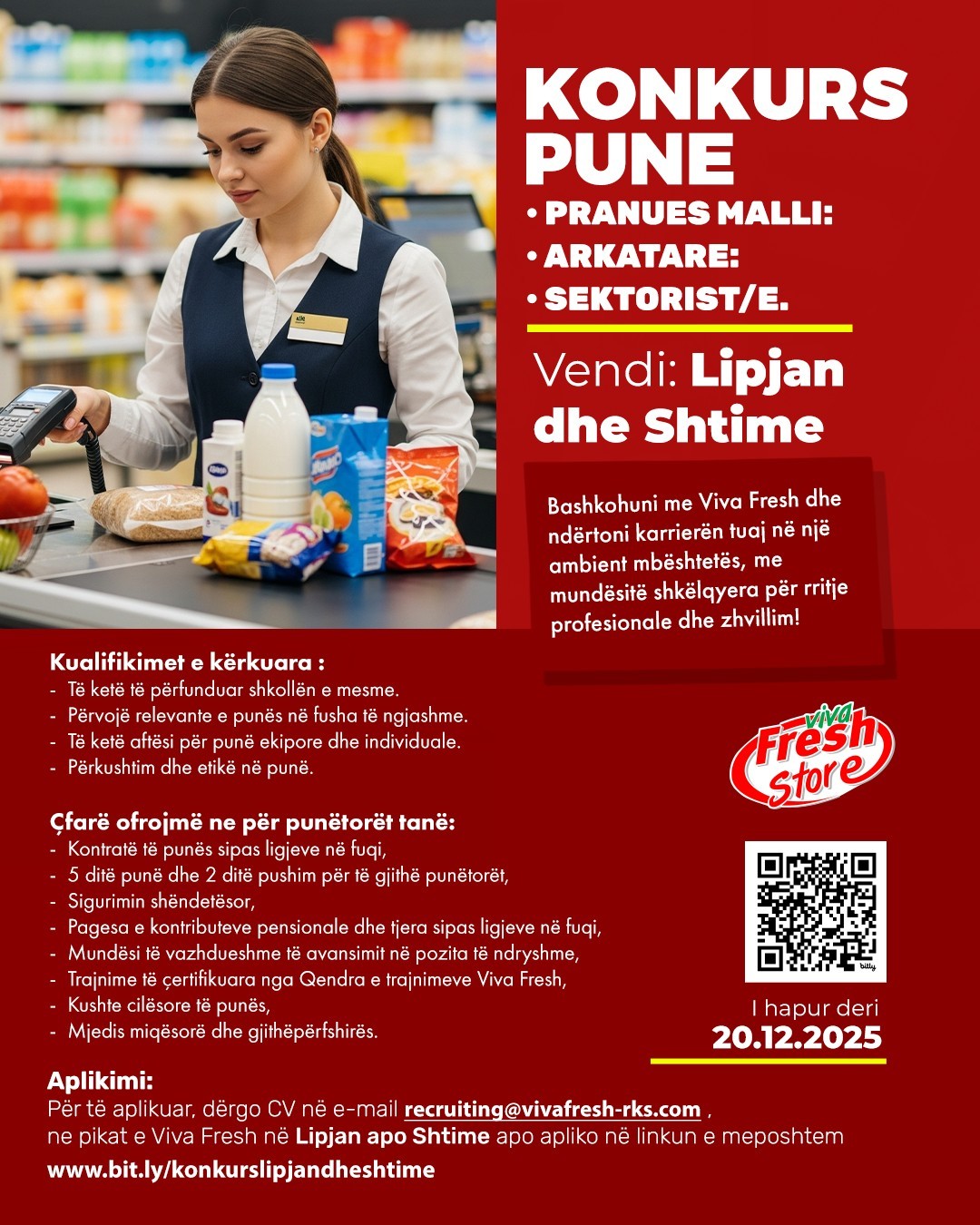Linku per aplikim: https://vivafresh-rks.com/aplikimet/apliko-per-pune-ne-shtime-apo-lipjan/