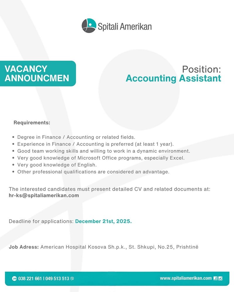 Shofer/e (6), Operator/e (1), Kontabilist/e i/e çertifikuar (1)