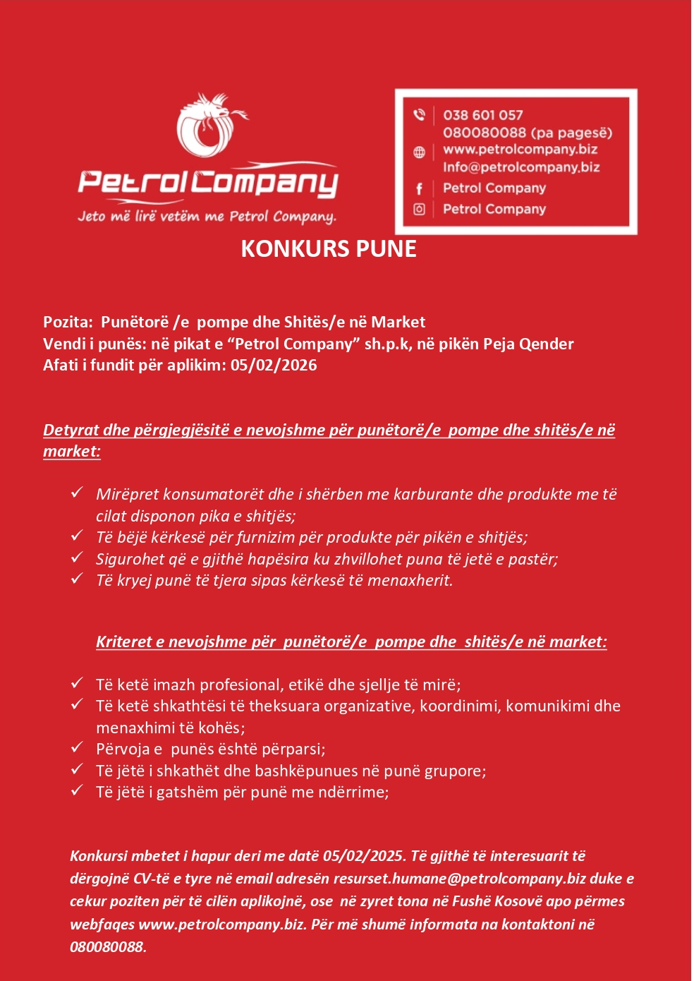 Punëtorë/e pompe, Shitës/e në Market
