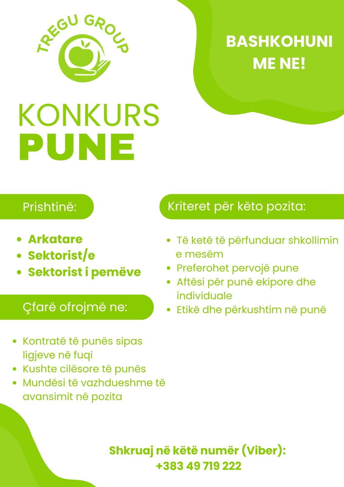 Inxhinier-e për Projektim dhe Menaxhim i Projekteve (2), Elektricist ne Mirëmbajtje dhe Zhvillim (1), Monter (1), Punëtor Fizik (1), Pastrues/e (1)