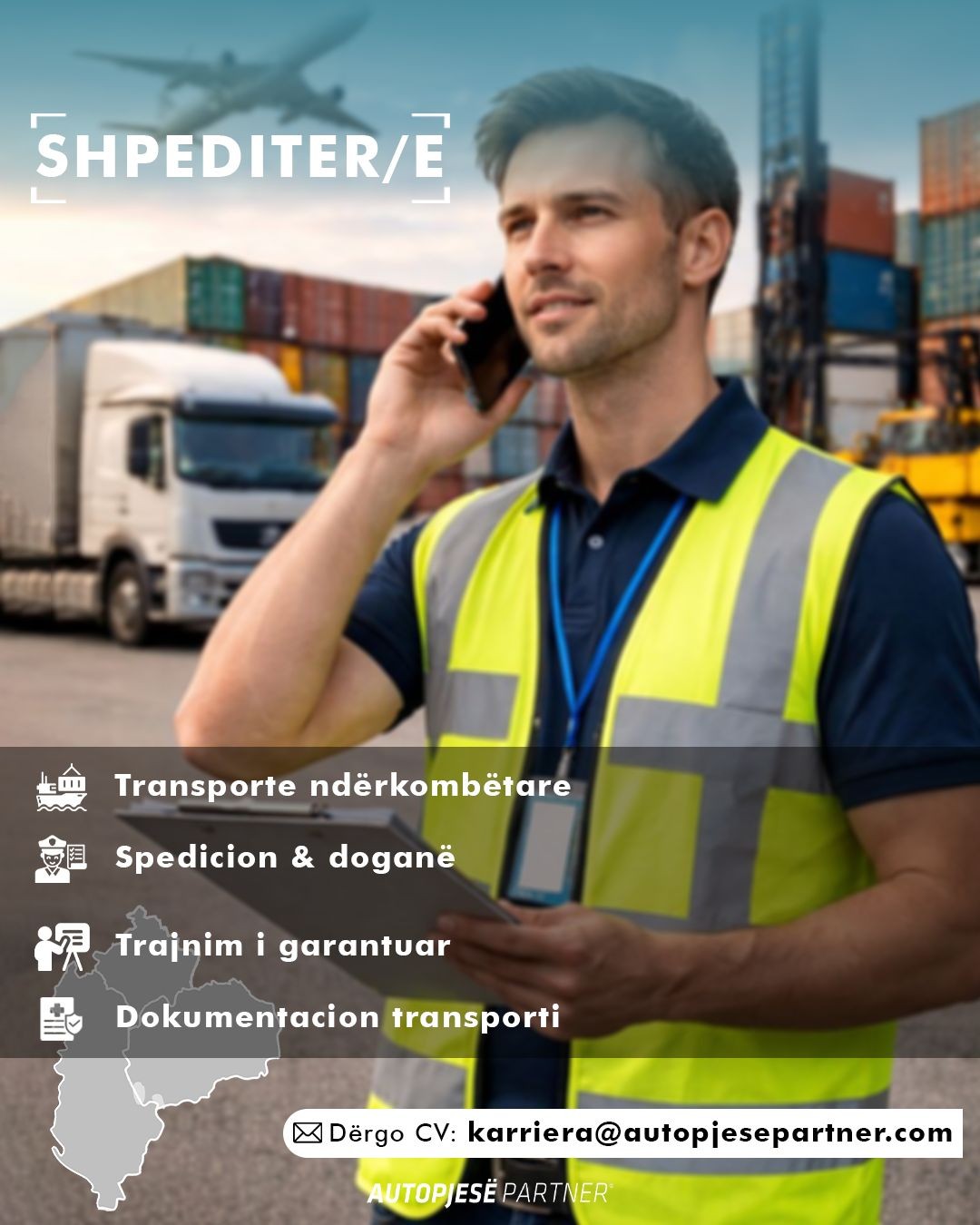 Pozita është e përshtatshme edhe për kandidatë pa përvojë të mëparshme në fushën e shpedicionit, pasi ofrohet trajnim i plotë dhe mbështetje gjatë fillimit të punës.