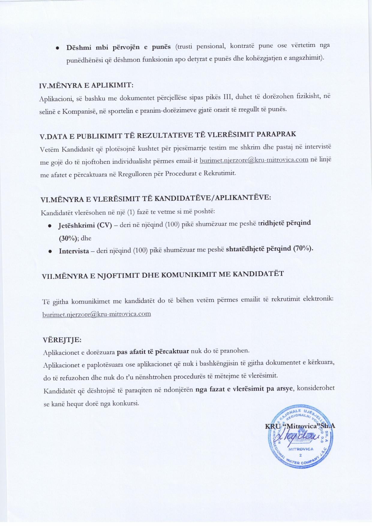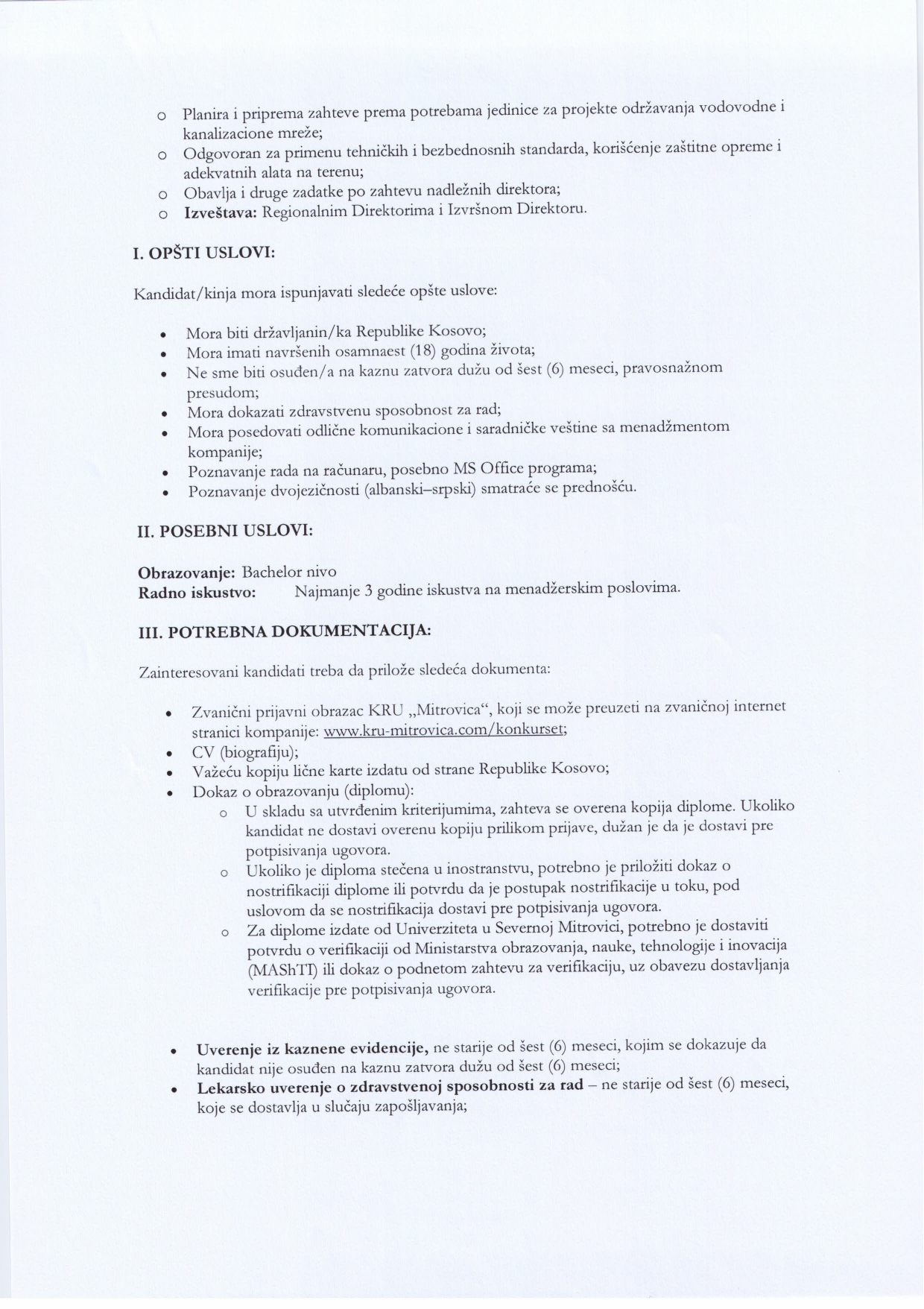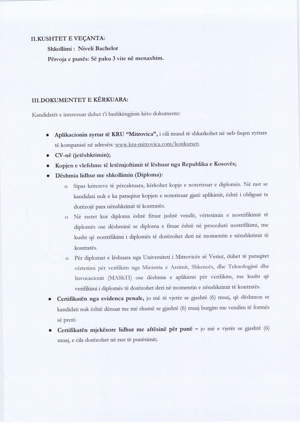 Department Menaxher/e, Arkatare, Sektorist/e - Sllatinë (Fushë Kosovë)
