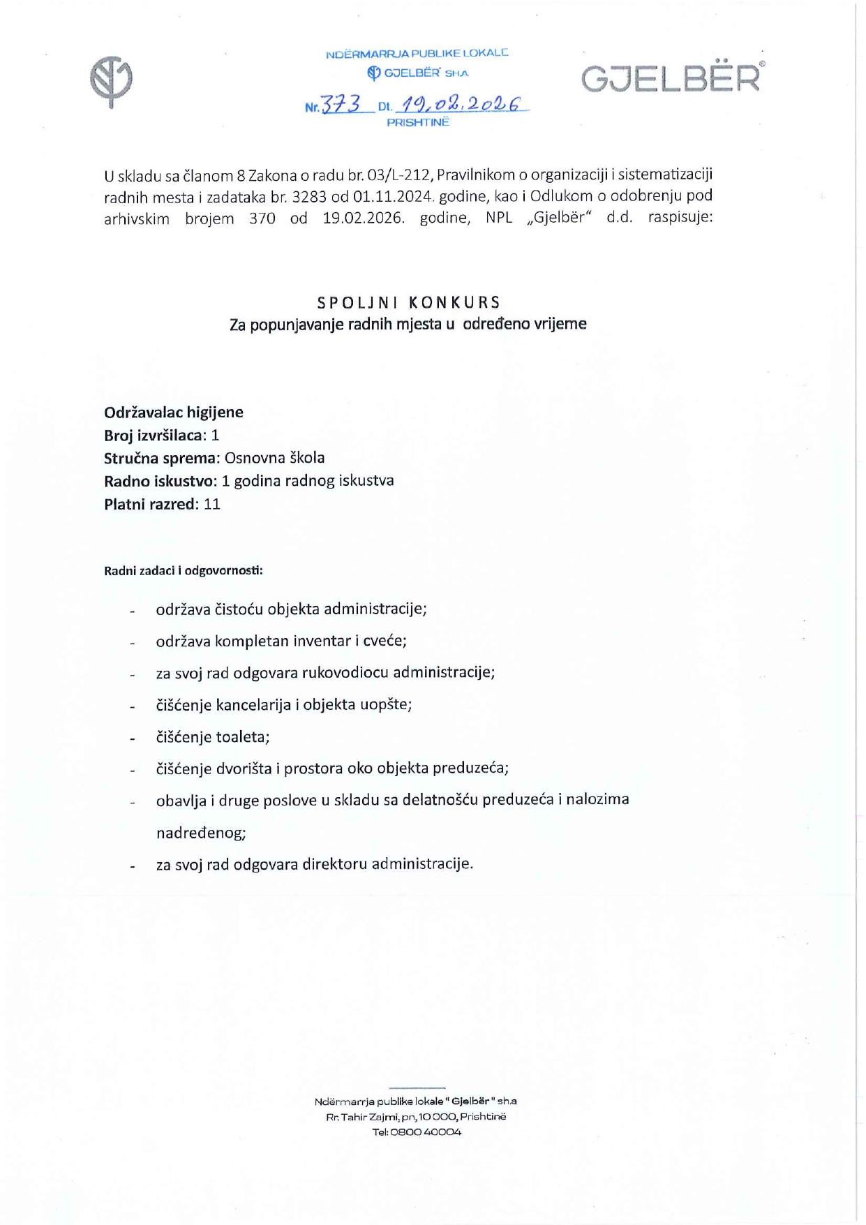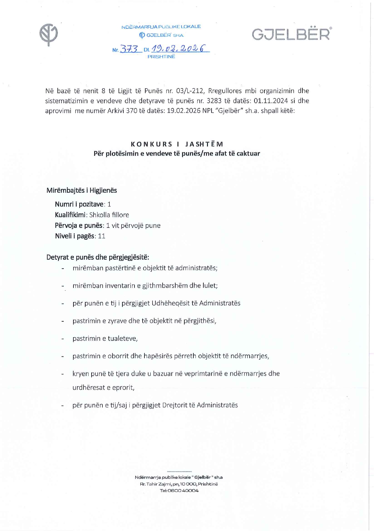 Punëtorë pastrimi, Recepsionistë, Mikpritës/Mikpritëse, Kamarier/Kamariere, Shankist/Shankiste, Kuzhinierë fillestarë, Mirëmbajtës Kuzhine, Punëtorë të Shërbimit të Bagazheve