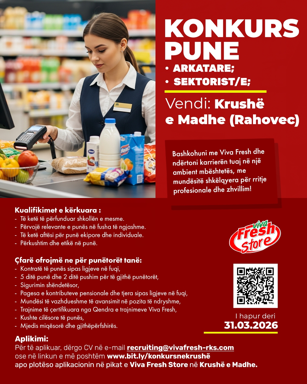 Linku per aplikim: https://vivafresh-rks.com/aplikimet/apliko-per-pune-ne-krushe-e-madhe/