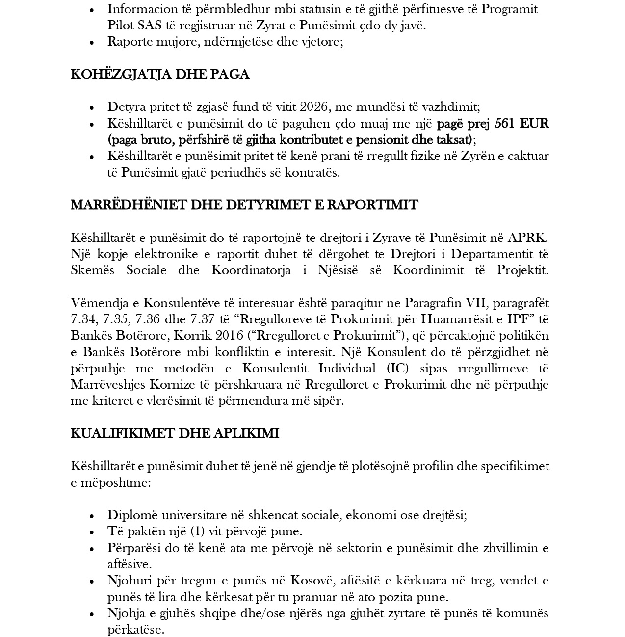 Aplikacioni do të konsiderohet i dorëzuar vetëm nëse pranoni konfirmim për pranimin e tij. Në mungesë të konfirmimit, duhet të kontaktoni Njësinë për Zbatimin e Projektit. Kandidatët e suksesshëm mund të ftohen në intervistë. Mosdorëzimi i dokumenteve të kërkuara rezulton me diskualifikim.
