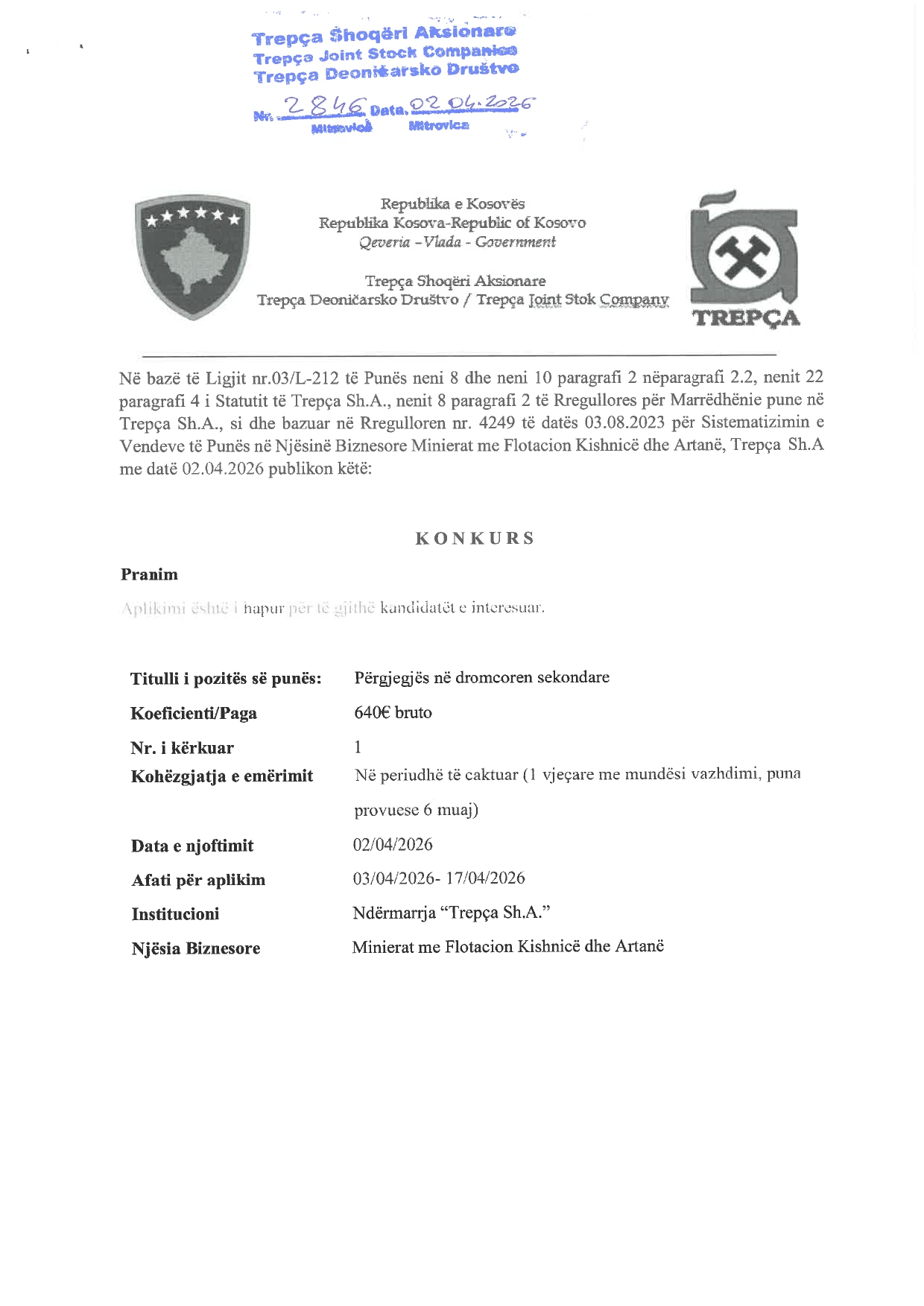 Shpall konkurs